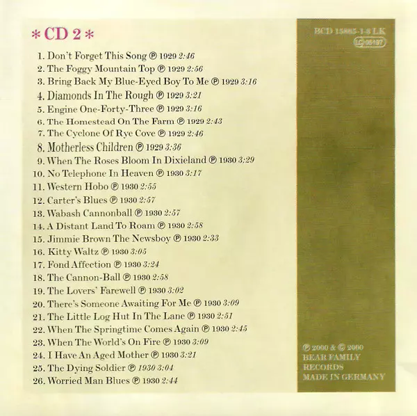| 3-18 | The Carter Family, Jimmie Rodgers: Why There's A Tear In My Eye | ||
