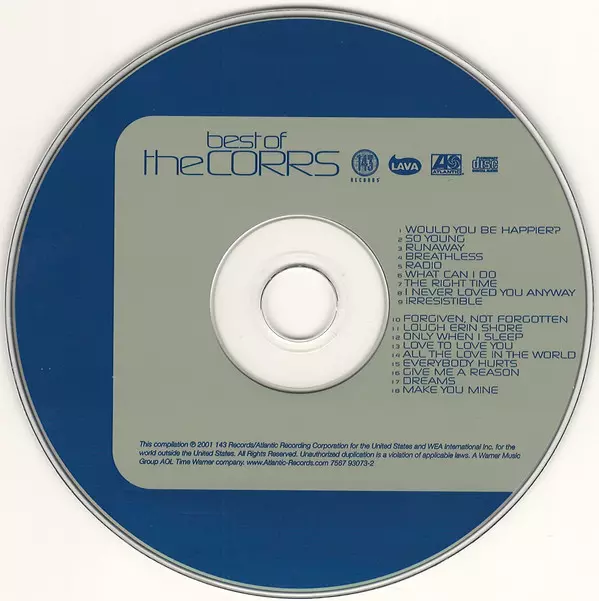 Pôvodne vyšla v roku 2001, "Best Of The Corrs" je dvojnásobne platinová kolekcia hitov, ktorá obsahuje prvé tri veľmi úspešné štúdiové albumy skupiny Corrs Forgiven Not Forgotten, Talk On Corners a In Blue.