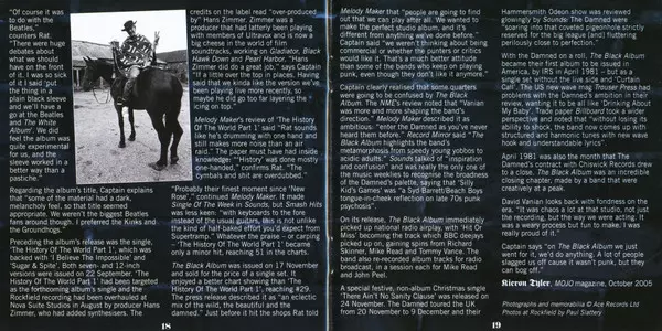 V průběhu roku 1980 strávili Damned ve studiu nahráváním / mixováním přibližně 1078 hodin a toto jubilejní 25. vydání THE BLACK ALBUM obsahuje veškerý materiál vydaný v tomto roce a jeden dosud nevydaný mix. The Black Album bylo venkovským albem kapely a jejím nejpsychedeličtějším albem. Zpočátku probíhala sezení v únoru a březnu ve Wessexu, kde se stříhalo MGE. Captain přišel s písní Rabid (Over You) jako s kandidátem na další singl, a přestože se jednalo o třeskutě dobrou píseň a rozhodně dostatečně komerční, titul byl v té době, co se týče mainstreamového rádia, neúspěšný. Radio Wonderful považovalo Smash It Up za podněcování k výtržnostem, bůhví, co by si o Rabid myslelo. Proto byla vybrána coververze v podobě White Rabbit od Jefferson Airplane a ta byla vystřižena na Wessex sessions spolu s Rabid (Over You). Session Rabid měl zpočátku na starosti Anthony More, který si s sebou přinesl svou syntezátorovou krabičku. Nicméně se mu nepodařilo dotáhnout session do konce, i když nakonec hodně přispěl ke zvuku desky. Já jsem mezitím stříhal Rabbit a Rat pracoval na velmi odbyté verzi klasiky z padesátých let Chantilly Lace, která měla vyjít pod pseudonymem Edgar Tempest and the Wild Rockers. Všechny tři strany byly hotové a byl naplánován singl s White Rabbit podpořený skladbou' Rabid (Over You) a elegickou do chaosu se proměňující kytarovkou od Kapitána s názvem Seagulls. Dostal se až do fáze zkušebního lisování u EMI a pak z něj kapela odešla, i když spatřil světlo světa ve Francii a Německu a do Velké Británie se dostal z dovozu. Chantilly Lace se nedostala na startovní blok. Bez singlu byl tedy na květen/červen rezervován čas v Rockfieldu, aby se nahrála většina Černého alba. Ve Wessexu byly vystřiženy rané záběry History of the World Part 1 a Curtain Call a dokonce i základní akustická skladba pro Dr. Jekyll And Mr Hyde.