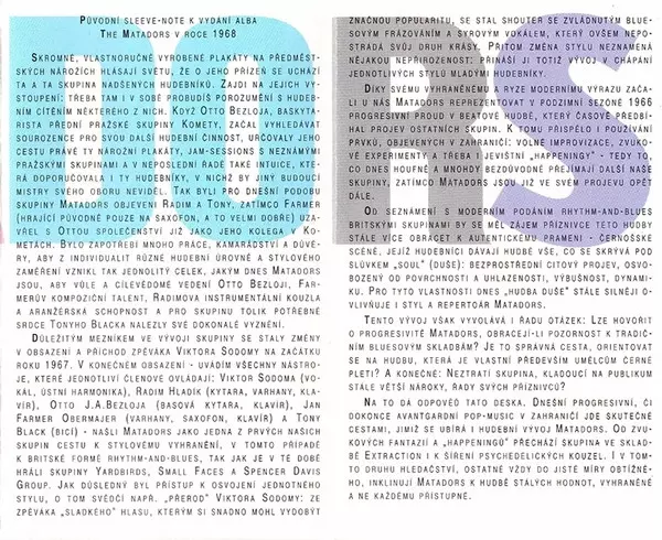 The Matadors: The Matadors verzia na MC v remasterované edícii. Toto konkrétne vydanie vyšlo v Česku vo vydavateľstve Bonton roka 1995. Album zasahuje do žánrov Rock, Funk / Soul, Rhythm & Blues, Psychedelický rock, Blues Rock a Rock & Roll. Chromium Dioxide 120 µs.