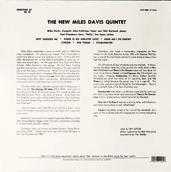 | Vydavateľstvo | Original Jazz Classics | Prestige |