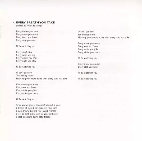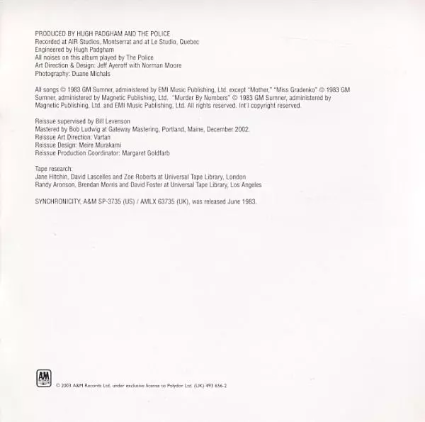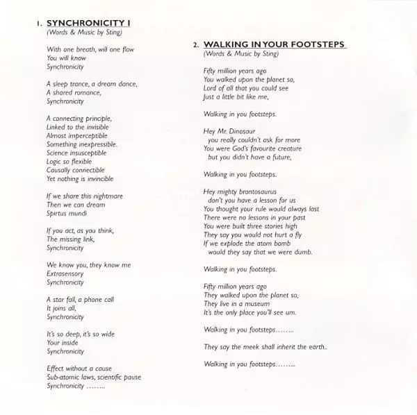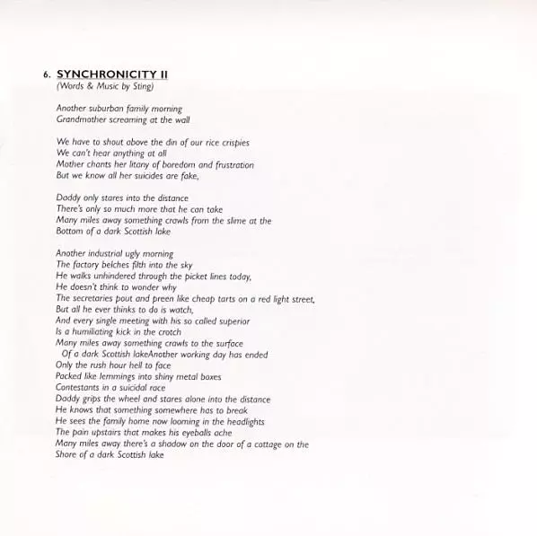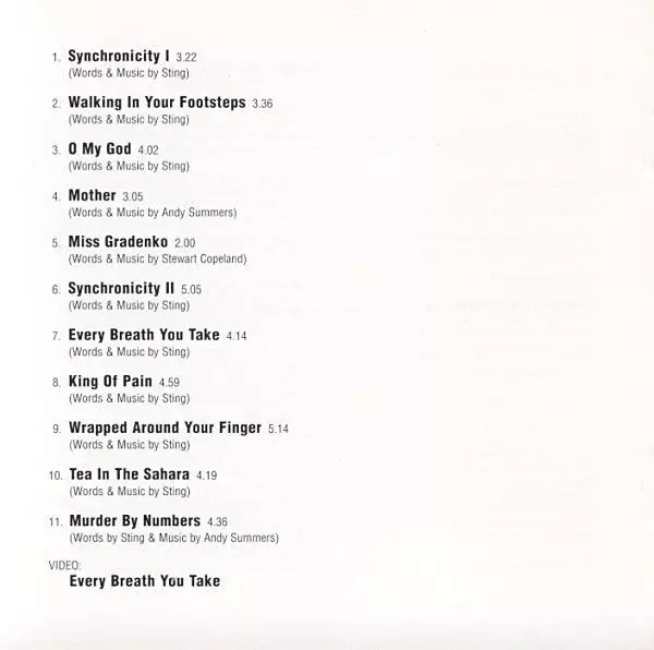 V roku 1983 sa The Police vrátili z prestávky, ktorú si sami dali, albumom "Synchronicity". Tento album urobil z kapely superhviezdy. Nanešťastie mal byť zároveň posledným pred tým, ako Sting opustil svojich kolegov v prospech sólovej kariéry. Päť z jedenástich skladieb sa dostalo do hitparád, vrátane stalkerskej piesne "Every Breath You Take", ...