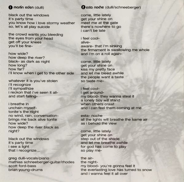 Bass Scott Ford | Drums Brian Young (5) | Guitar, Electric Piano [Rhodes] Mathias Schneeberger | Vocals, Piano Greg Dulli | Written-By Greg Dulli