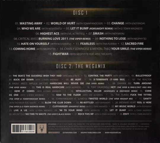 | 2-21 | The Viper, G-Town Madness: Cliffhanger (Angerfist Remix) | 3:42 min | |