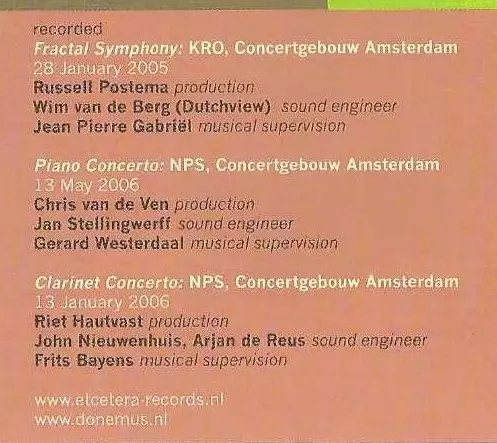 | Názov | Clarinet Concerto, Piano Concerto & Fractal Symphony |