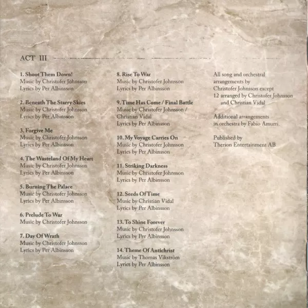 Lyrics By Per Albinsson | Music By Christofer Johnsson, Thomas Vikström