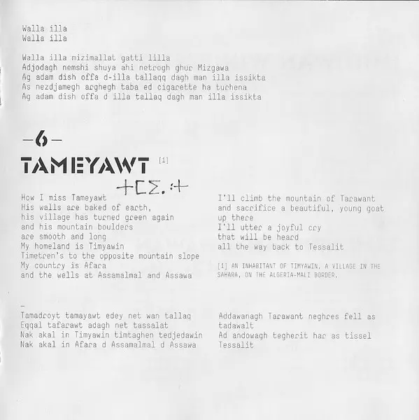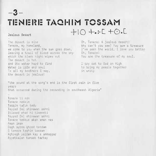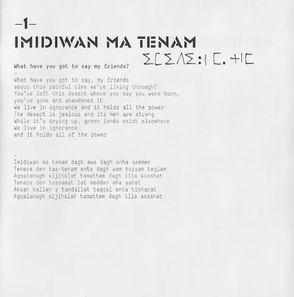 Tinariwen je skupina tuarégskych hudobníkov z oblasti saharskej púšte v severnom Mali, ktorá získala ocenenie Grammy. Skupinu založil v roku 1979 Ibrahim Ag Alhabib, ktorý bol spolu s ďalšími členmi nútený utiecť počas obdobia politických nepokojov a vojenských odvodov. Hudba skupi...