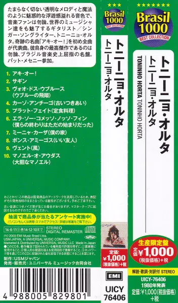 Toninho Horta: Toninho Horta LTD verzia na CD v limitované remasterované edícii. Toto konkrétne vydanie vyšlo v Japonsku vo vydavateľstve EMI dňa 1. júla 2014. Album zasahuje do žánrov Folk, World, & Country, Jazz, Latinská hudba, Latin Jazz a MPB.