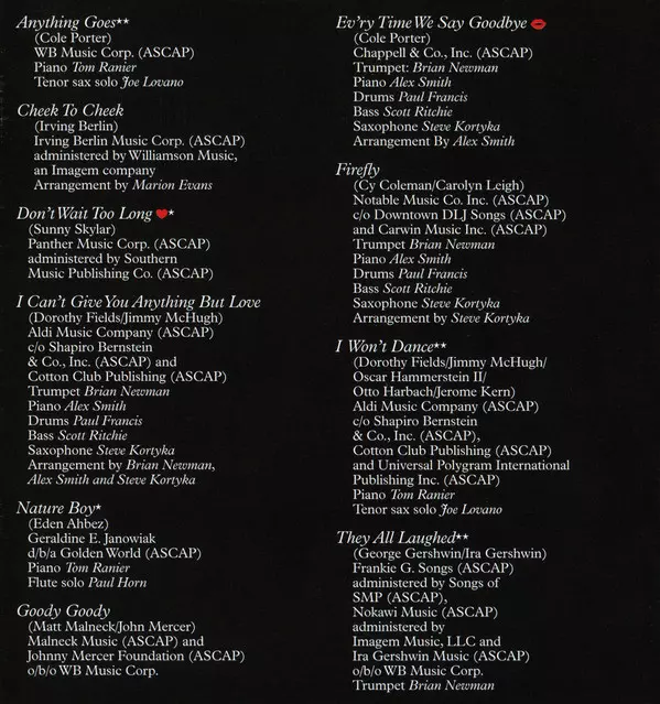 | Arranged By Alex Smith (7) | Bass Scott Ritchie | Drums Paul Francis (2) | Piano Alex Smith (7) | Saxophone Steve Kortyka | Trumpet Brian Newman (4) | Written-By Cole Porter | |||