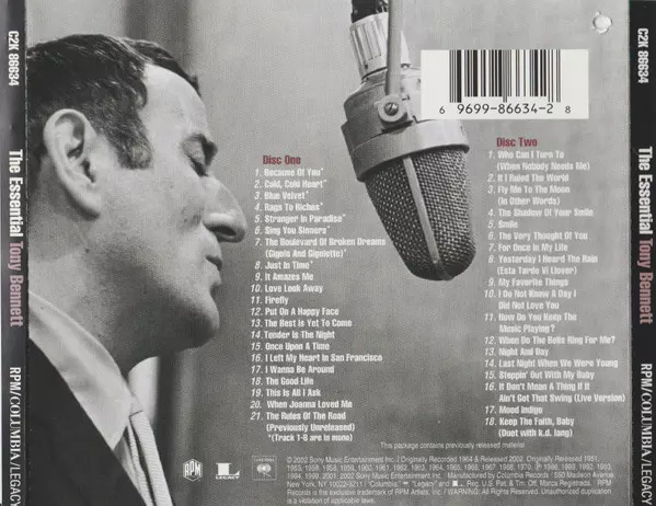 Tony Bennett: The Essential Tony Bennett verzia na 2CD v štandardný edícii. Toto konkrétne vydanie vyšlo v USA vo vydavateľstve RPM Records (7) v spolupráci s Columbia a Legacy dňa 23. júla 2002. Album zasahuje do žánrov Pop, Stage & Screen a Vokál.