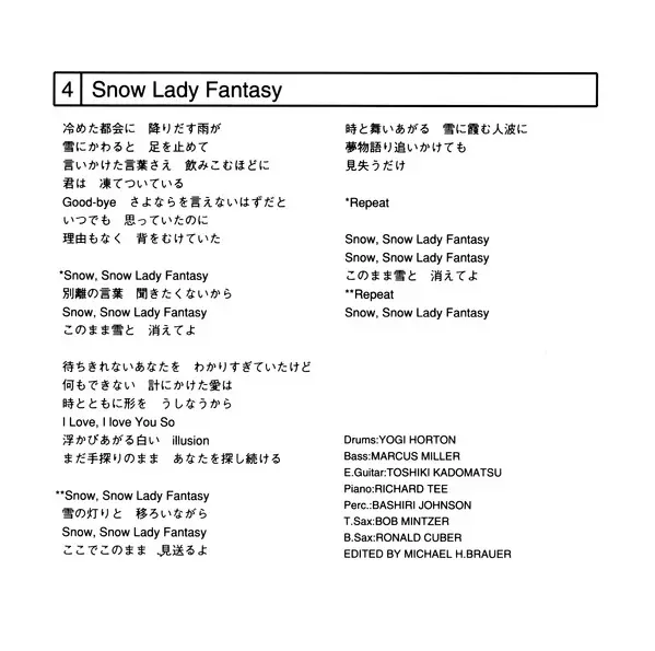 Chorus Cindy Mizelle, Curtis King, Rachele Cappelli | Drum Machine [Lyn Dr.], Programmed By [Simmons] Jimmy Bralower | Drums Yogi Horton | Edited By Michael H. Brauer | Electric Bass Tinker Barfield, Tomohito Aoki | Electric Guitar Georg Wadenius | Keyboards Ray Chew, Yoshihiro Tomonari | Synthesizer Jeff Bova