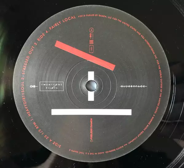 Twenty One Pilots: Blurryface verzia na vinylu 2LP v štandardný edícii. Toto konkrétne vydanie vyšlo v Evropě vo vydavateľstve Fueled By Ramen dňa 13. augusta 2015.
