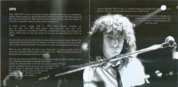 This album is a live recording of a 2010 UFO concert. The band plays a mix of classic and newer hard rock songs and the performance is energetic and enthusiastic. The album perfectly represents UFO 's live show and is a great choice for fans of hard rock music.