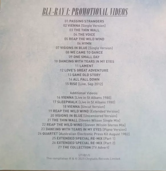 Ultravox: The Collection DLX | LTD verzia na 4CD/Box Set/2Blu-ray v remasterované deluxe limitované edícii. Toto konkrétne vydanie vyšlo v Worldwide vo vydavateľstve Chrysalis Catalogue dňa 5. decembra 2025.