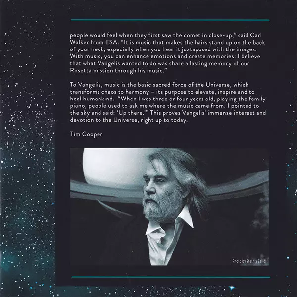 Vangelis Legendárny grécky skladateľ a hudobník Vangelis je nepochybne jedným z priekopníkov elektronickej hudby. Autor desiatok nezabudnuteľných hitov, ktorý sa v hudobnej branži pohybuje už neuveriteľných päťdesiat rokov, je vo svojich sedemdesiatich troch rokoch stále pri sile, čo koncom septembra potvrdí novým albumom Rosetta.Vangelis je už dlho milovníkom vesmíru a všetkého, čo s ním súvisí, a tak aj nové dielo Rosetta, ktoré bude obsahovať trinásť skladieb, našlo svoju inšpiráciu práve tam. Hlavným impulzom pre jeho novú nahrávku, ktorá sa v obchodoch objaví 23. septembra, bola vesmírna sonda Rosetta, ktorú v roku 2004 vyslala Európska vesmírna agentúra (ESA), aby prvýkrát v histórii preskúmala jadro kométy. Podarilo sa jej to po desaťročnej misii v roku 2014 a počas tejto cesty uskutočnila aj niekoľko preletov okolo Zeme, Marsu a asteroidov (2867) Steins a (21) Lutetia.Grécky skladateľ bol sondou a jej misiou uchvátený, ale úplný zlom a rozhodnutie venovať sonde celý album prišlo, keď ho na stránke Vangeliskontaktoval astronaut André Kuipers z Medzinárodnej vesmírnej stanice, ktorý je tiež veľkým fanúšikom jeho hudby, a počas videohovoru začal opisovať príbehy a zážitky z misie: "Mytológia, veda a výskum vesmíru sú témy, ktoré ma inšpirujú od útleho detstva. A dá sa povedať, že vždy boli nejakým spôsobom spojené s hudbou, ktorú som tvoril," hovorí Evangelos Odysseas Papathanassiou alias Vangelis, ktorý má na konte aj hudbu k filmom ako Blade Runner, Maska, 1492: Dobytie raja, Alexander Veľký a Bounty a ďalšie."Rosetta je venovaná všetkým, ktorí prispeli k tomu, aby sa táto misia stala skutočnosťou," dodáva jedným dychom umelec, ktorý ako prejav veľkého uznania venoval celému tímu misie pieseň Mission Accomplie (Rosetta Waltz). nadšenie pre vesmír potvrdzuje aj predchádzajúca tvorba gréckej legendy. V roku 2001 skomponoval nádhernú chorálovú symfóniu Mythodea pre štart americkej vesmírnej sondy Mars Odyssey a na konte má aj hudbu k dokumentárnemu seriálu Cosmos. Ako naznačujú vyššie uvedené informácie, s novým vydaním Rosetty nás čaká úplne výnimočný hudobný zážitok... Legendárny hudobník Vangelis je konečne späť! Už 23. septembra vydá svoj nový album Rosetta, ktorý sa na trhu objaví pod hlavičkou vydavateľstva Universal Music!