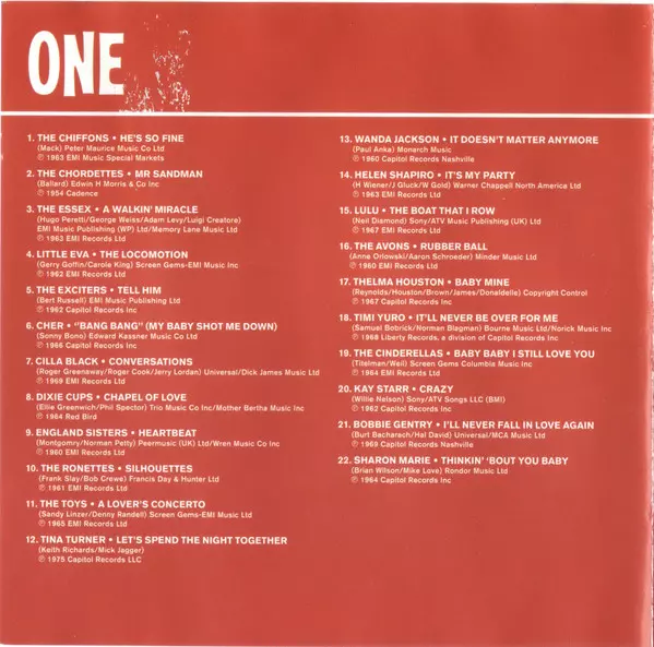 | 1-1 | The Chiffons: He's So Fine | ||