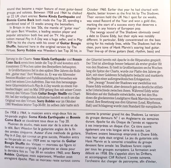 | Bass [Uncredited] Brian Locking | Drums [Uncredited] Brian Bennett | Music By, Lead Guitar [Uncredited] Hank Marvin | Music By, Rhythm Guitar [Uncredited] Bruce Welch | |||