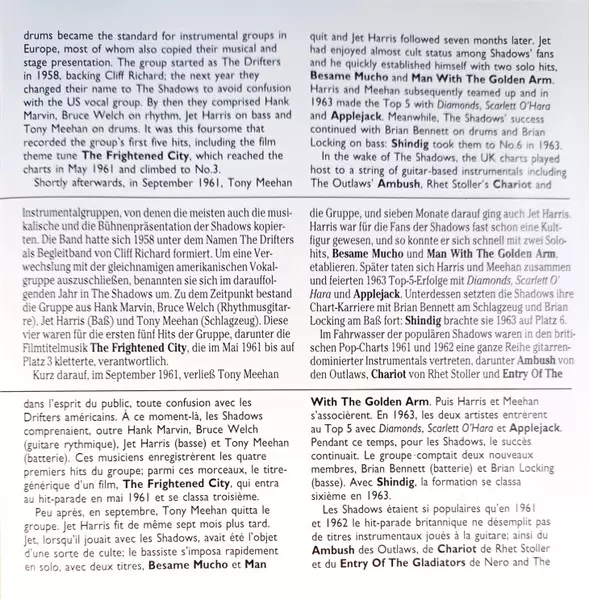 | Bass Guitar [Uncredited] Jet Harris | Drums [Uncredited] Tony Meehan | Lead Guitar [Uncredited] Hank Marvin | Music By Norrie Paramor | Rhythm Guitar [Uncredited] Bruce Welch | |||