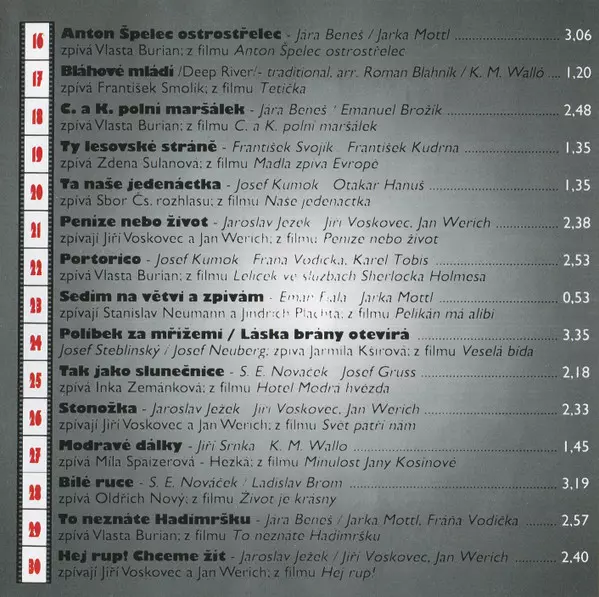 | 30 | Voskovec + Werich: Hej Rup Chceme Žít | 2:40 min |