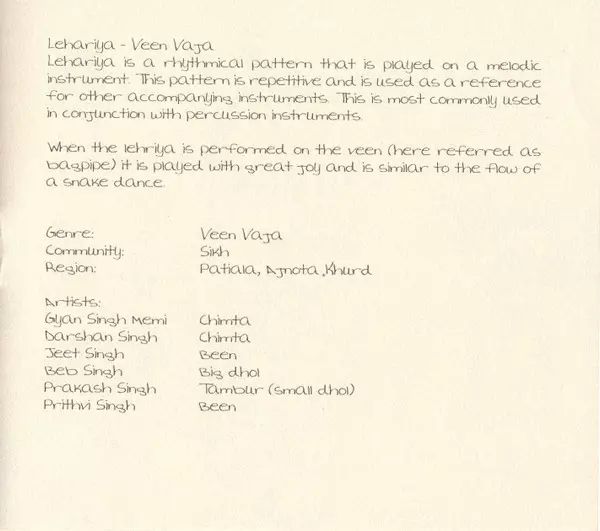 | 1 | Gyan Singh Memi & Group: Lehariya - Veen Vaja | 7:54 min | |