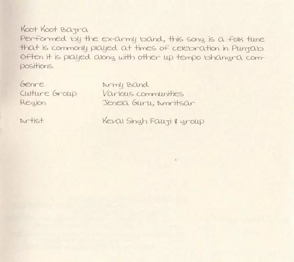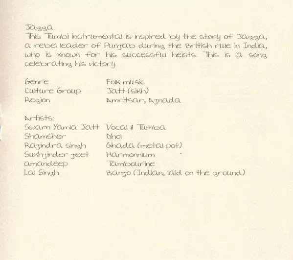 | Banjo [Indian, laid on the ground] Lai Singh | Dhol Shamsher | Harmonium Sukhjinder Jeet | Instruments [Ghada (Metal Pot)] Rajindra Singh | Tambourine Amandeep | Vocals, Instruments [Tumba] Swarn Yamla Jatt | |||