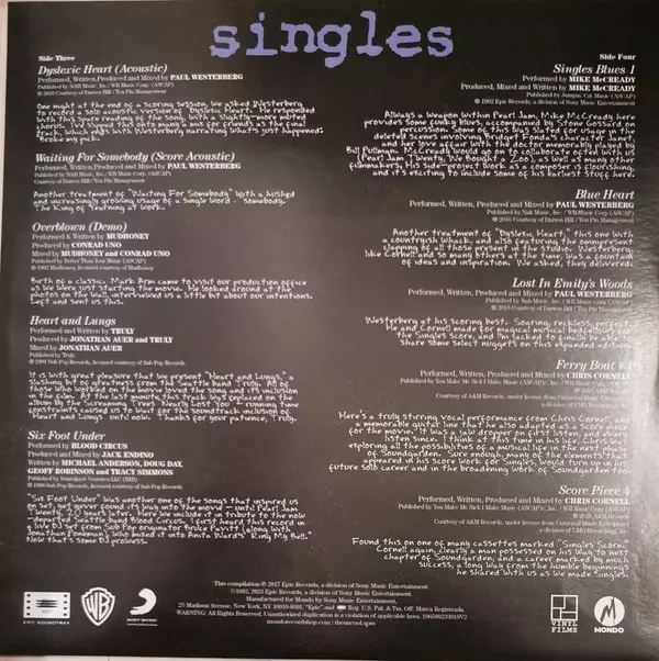 | Vydavateľstvo | Mondo (3) | Epic Soundtrax | Warner Bros. | Sony Music Commercial Music Group |