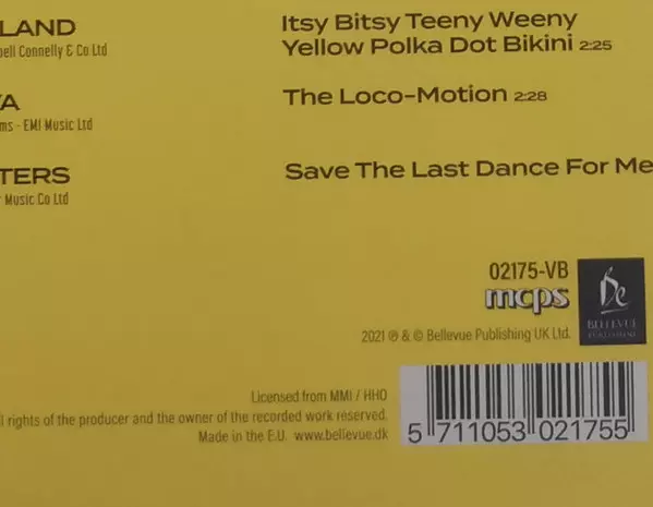 | B7 | Brian Hyland: Itsy Bitsy Teeny Weeny Yellow Polka Dot Bikini | 2:25 min | |