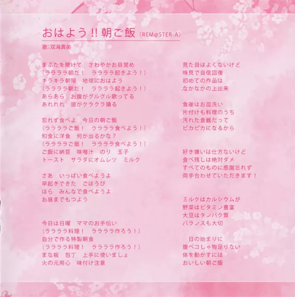 | 6 | Asami Shimoda: おはよう!!朝ごはん (Rem@Ster-A) | 3:55 min | |
