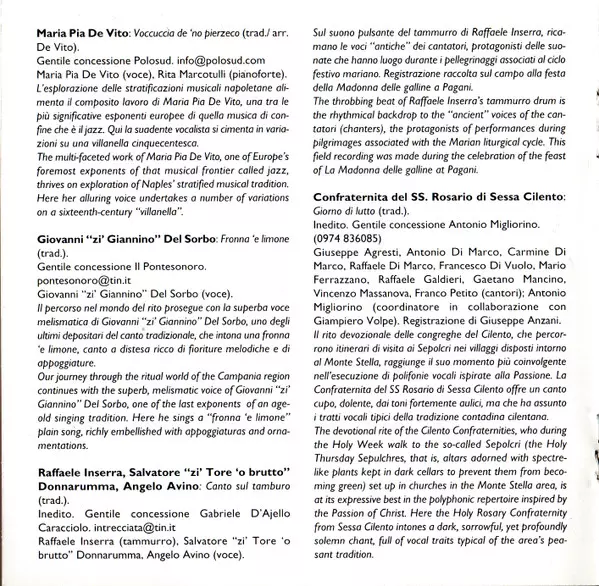 | 11 | Raffaele Inserra, Salvatore Donnarumma, Angelo Avino: Canto Sul Tamburo | ||