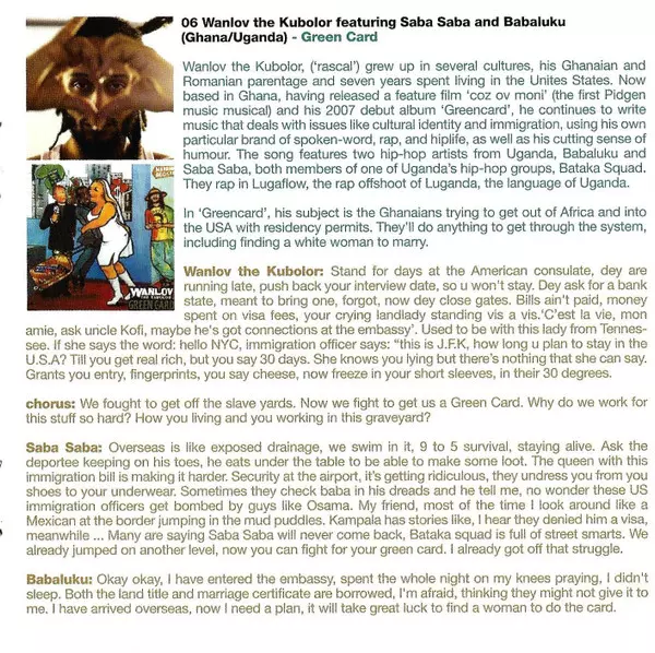| 6 | Wanlov The Kubolor, Babaluku, Saba Saba: Green Card | 4:04 min | |