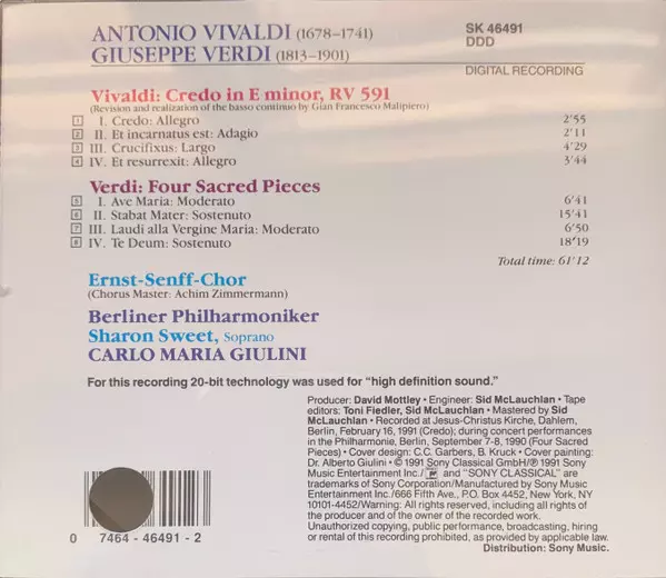 | Interpret | Antonio Vivaldi | Berliner Philharmoniker | Giuseppe Verdi | Carlo Maria Giulini | Ernst Senff Chor Berlin | Sharon Sweet |