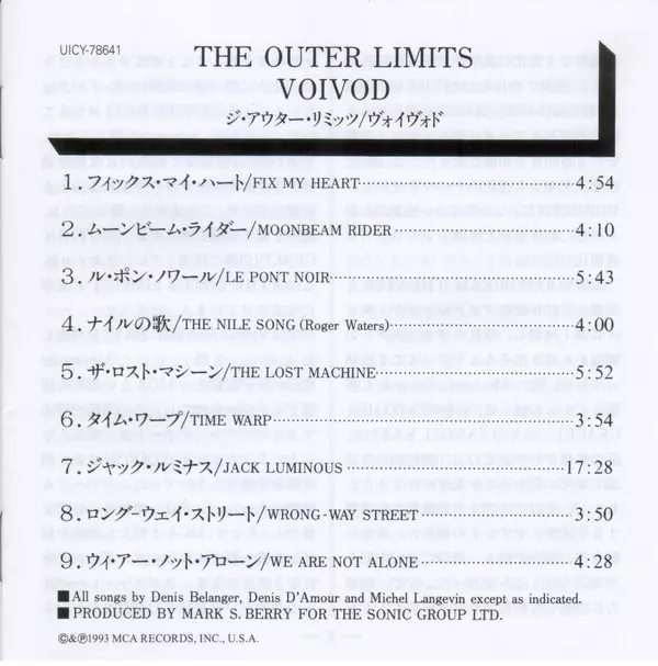 The Outer Limits is the fifth studio album by Canadian heavy metal band Voïvod , released on July 13, 1993. It was the last album by the band to feature original bassist Jean-Yves Thériault before his departure in 1994. The album was recorded at Le Studio in Morin Heights, Quebec and mixed at The Plant in Sausalito, California. The Outer Limits ...