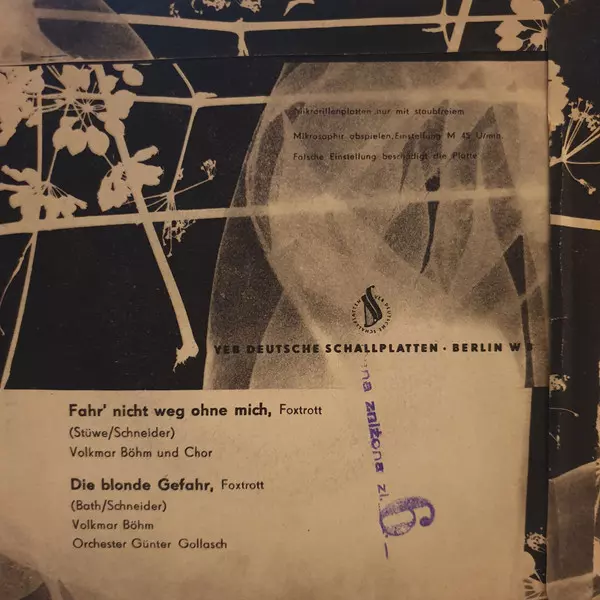 | A | Unknown Artist, Orchester Günter Gollasch, Volkmar Böhm: Fahr' Nicht Weg Ohne Mich | ||