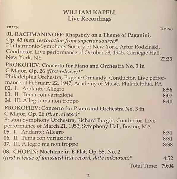 | Interpret | Frédéric Chopin | Sergei Vasilyevich Rachmaninoff | Sergei Prokofiev | William Kapell |