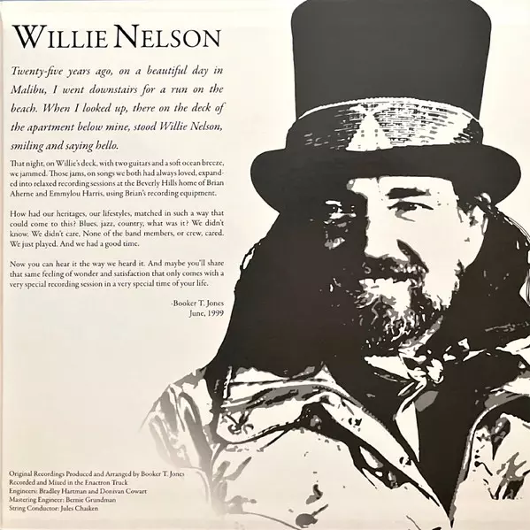 Willie Nelson (voc, g); Booker T. Jones (org, p); Jody Payne (g); Bobbie Nelson (p); Bee Spears, Chris Ethridge (b); Mickey Raphael (hca); Paul English, Rex Ludwick (dr) Willie Nelson has long been revered as a true legend, his songs and concerts popular around the world. Although his roots are in country music, his musical influences are as wid...