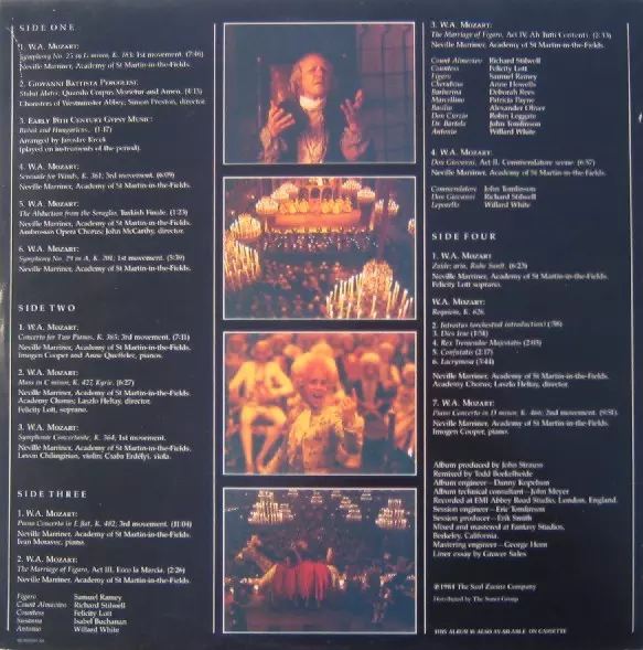 Conductor Sir Neville Marriner | Orchestra The Academy Of St. Martin-in-the-Fields | Vocals [Commandatore] John Tomlinson (2) | Vocals [Don Giovanni] Richard Stilwell | Vocals [Leporello] Willard White