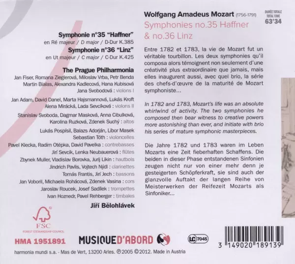 Názov | Symphonies No.35 Haffner & No.36 Linz |