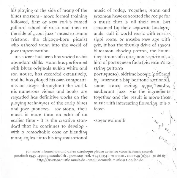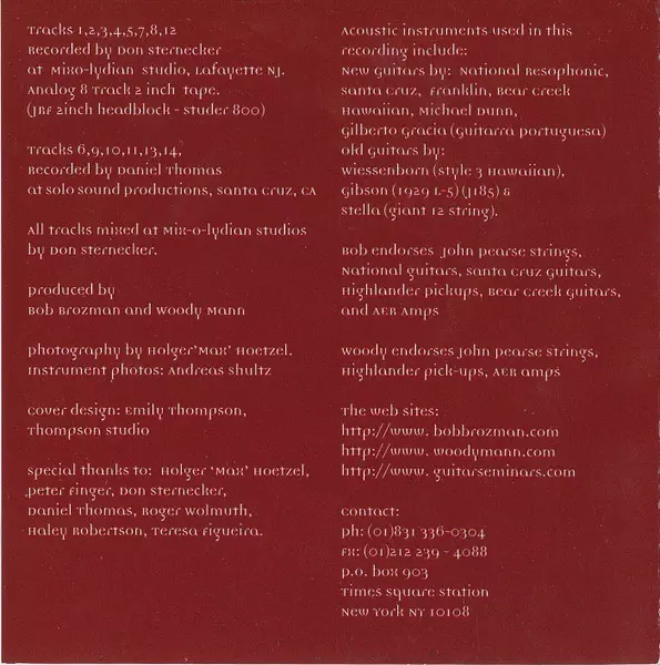 | Interpret | Bob Brozman | Woody Mann |