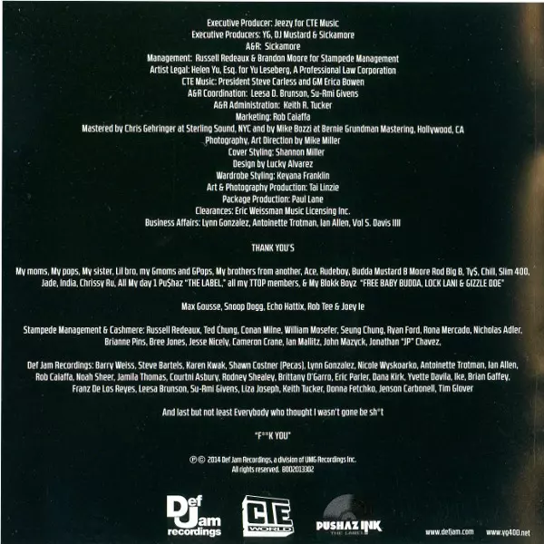 | Vydavateľstvo | Def Jam Recordings | CTE World | Pushaz Ink The Label |