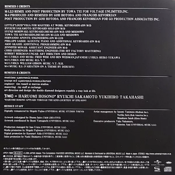 Engineer Fernando Aponte | Keyboards [Solo] Ryuichi Sakamoto | Lyrics By William Gibson | Mastered By Chris Gehringer | Remix, Drums, Keyboards Towa Tei | Written By Haruomi Hosono, Yukihiro Takahashi