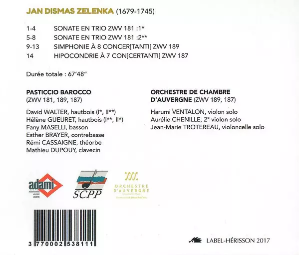 | Interpret | Jan Dismas Zelenka | Pasticcio Barocco | Orchestre de Chambre D'Auvergne |