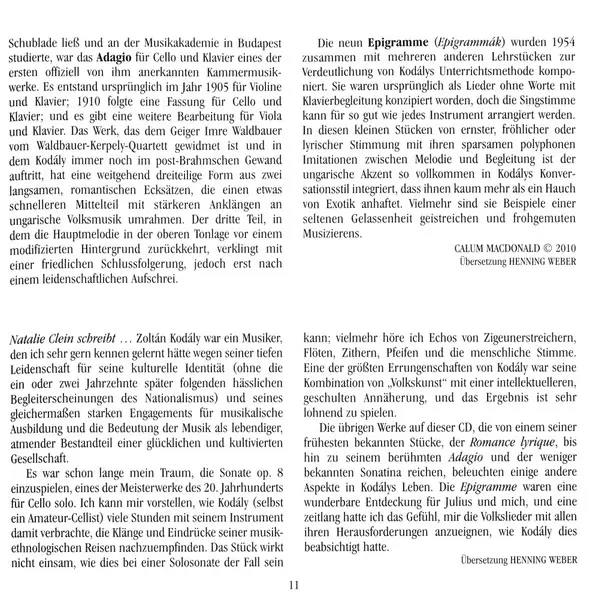 Interpret | Zoltán Kodály | Natalie Clein | Julius Drake |