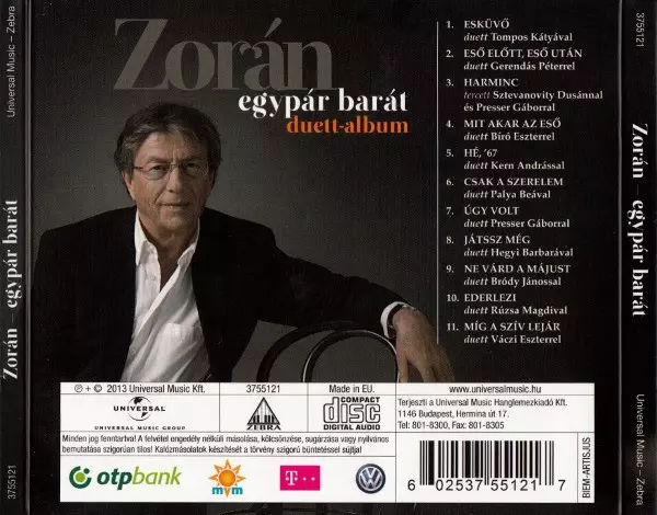 Zorán Sztevanovity: Egypár Barát verzia na CD v štandardný edícii. Toto konkrétne vydanie vyšlo v Maďarsko vo vydavateľstve Zebra (2) dňa 20. septembra 2013. Album zasahuje do žánrov Rock, Pop, Balada, Akustická hudba a Pop Rock.